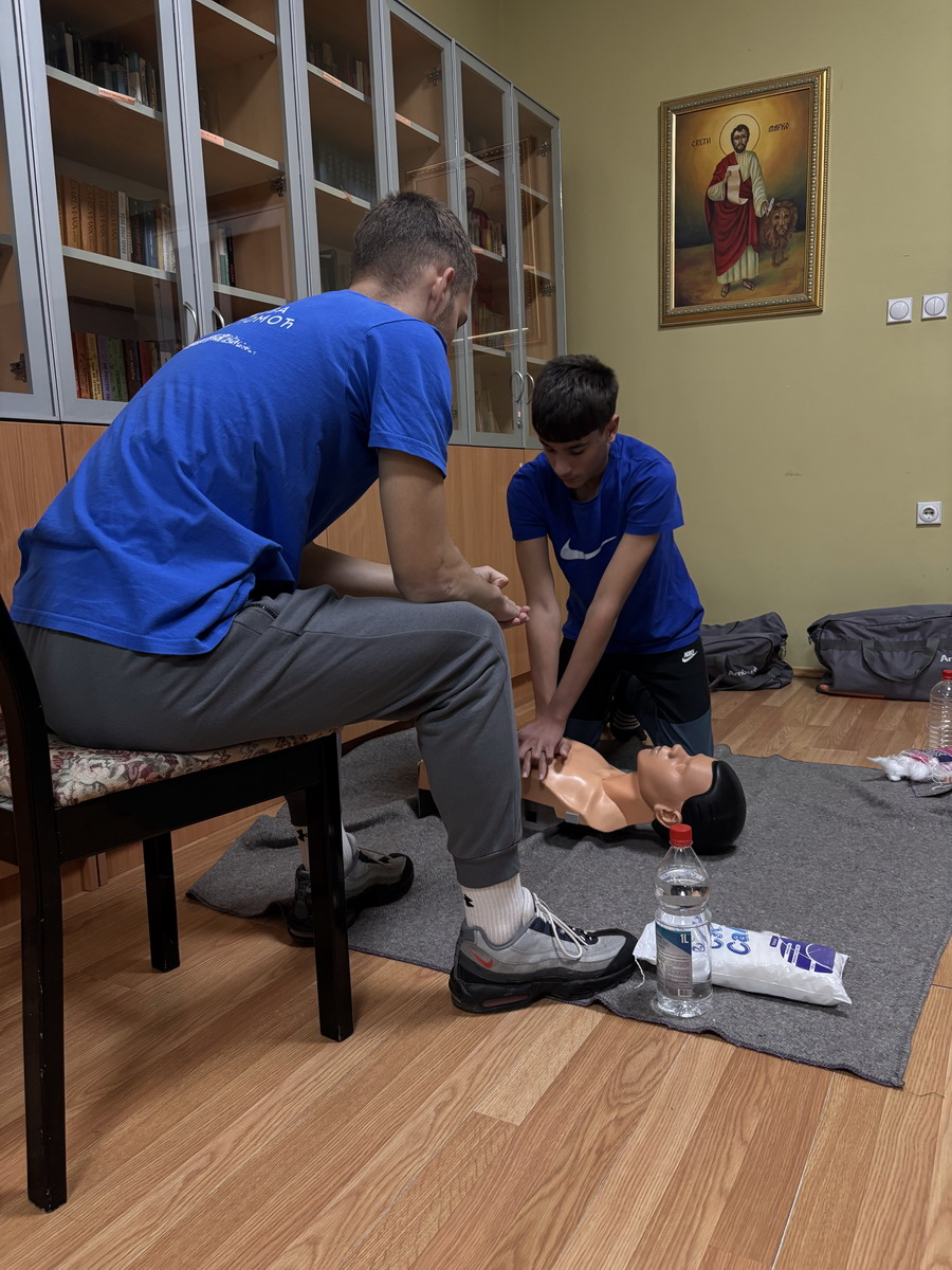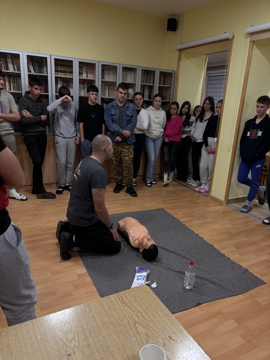 Током радионице, ученици су имали прилику да се упознају са значајем брзе реакције у случају изненадног срчаног застоја, као и да практично увежбају основне кораке оживљавања – препознавање стања, позивање помоћи и правилно извођење компресија грудног коша.